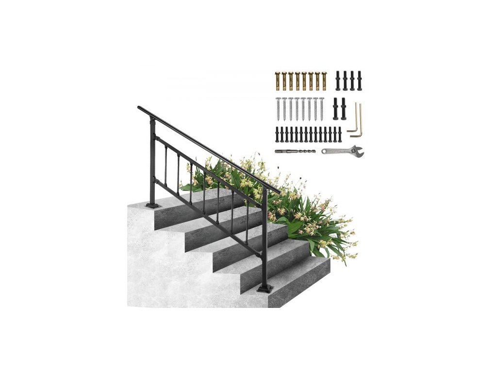 Venkovní schodišťové zábradlí VEVOR, vhodné pro 1-4 schody, přechodové kované železné madlo, nastavitelné venkovní schodišťové zábradlí, madla pro betonové schody s instalační sadou, matně černé venkovní madlo