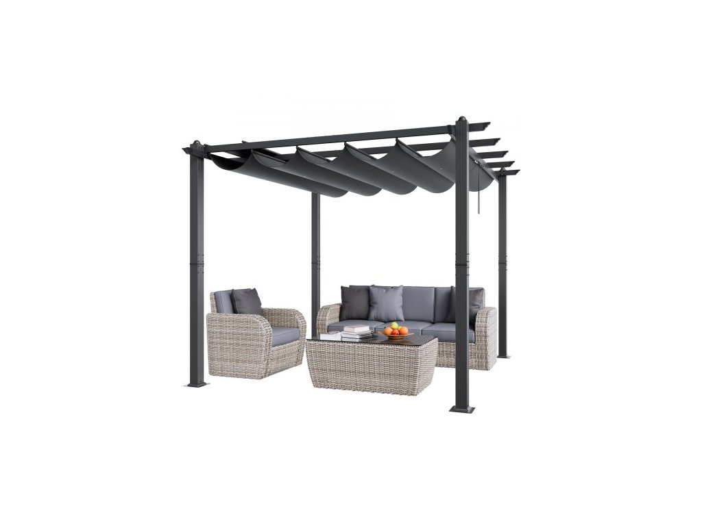 Venkovní zatahovací pergola VEVOR 10'x10' se stříškou, hliníková pergola se zatahovací stříškou, moderní pergola se sluneční clonou pro terasy, zahrady, verandy, dvorky (šedá)Efektivní ochrana