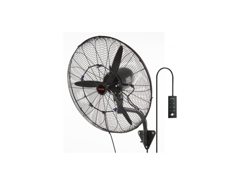 Ventilátor VEVOR Mist Fan, 24,2 palcový oscilační vodotěsný ventilátor, 3 rychlosti, 7000 CFM, komerční nebo rezidenční ventilátor pro chlazení skladu, skleníku, dílnyNainstalujte kovovou základnu