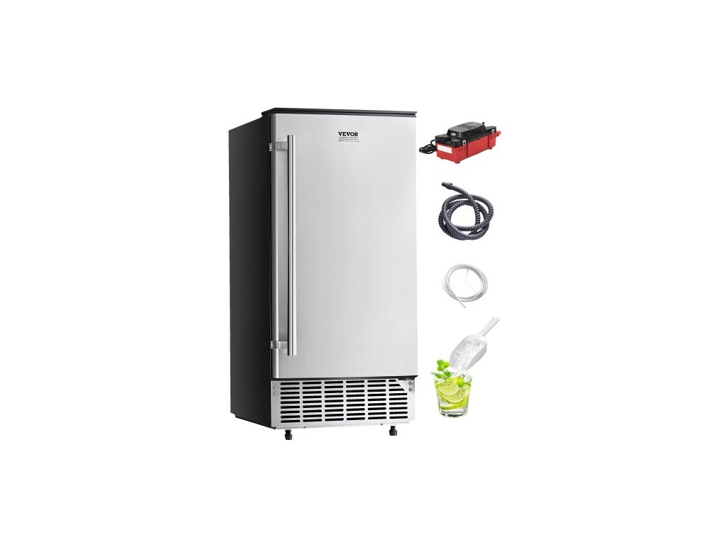 Vestavný výrobník ledu VEVOR pod pult, 80 liber/den, výrobník ledu pod pult s odtokovým čerpadlem, oboustranné dveře z nerezové oceli, volně stojící výrobník ledu pro komerční domácí kuchyněVelká produkce ledu