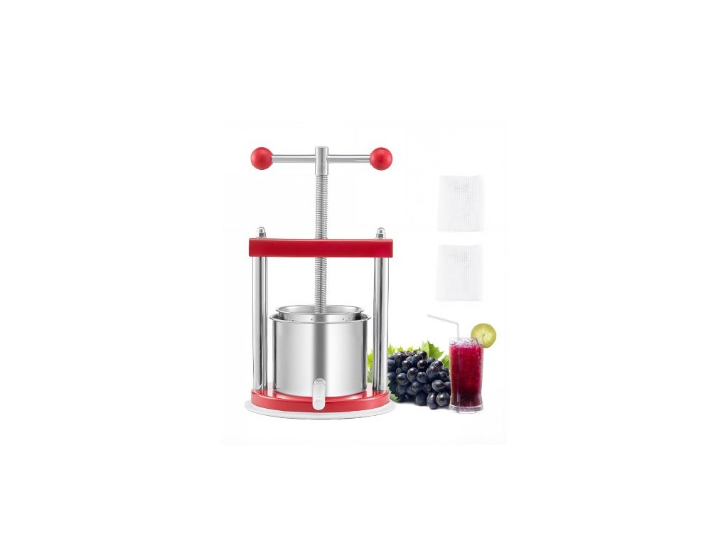 VEVOR 0,44 galonu/1,65 l lis na ovocné víno, 2 nerezové sudy, ruční odšťavňovač, lis na výrobu jablečného, hroznového a medového olivového oleje s T-rukojetí pro venkovní kuchyň a domácnostVelká přítlačná deska