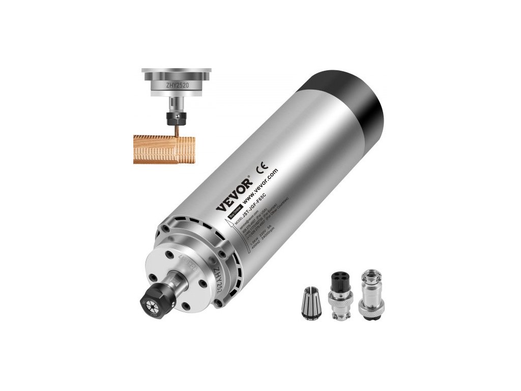 Rozměry produktu (přibližné): 38 cm D x 18 cm Š x 18 cm V, Model ložiska: NSK 6002 x 2, NSK 6000 x 2,Specifikace: φ65 x 205 mm (průměr: 65 mm x délka: 205 mm), Výkon: 1,5 kW, Napětí: 220V~250V, Frekvence: 400 Hz, Rychlost: 8000-24000 ot./min, Házení: menší než 0,005 mm, Hrubá hmotnost: 2,8 kg (6,17 liber)