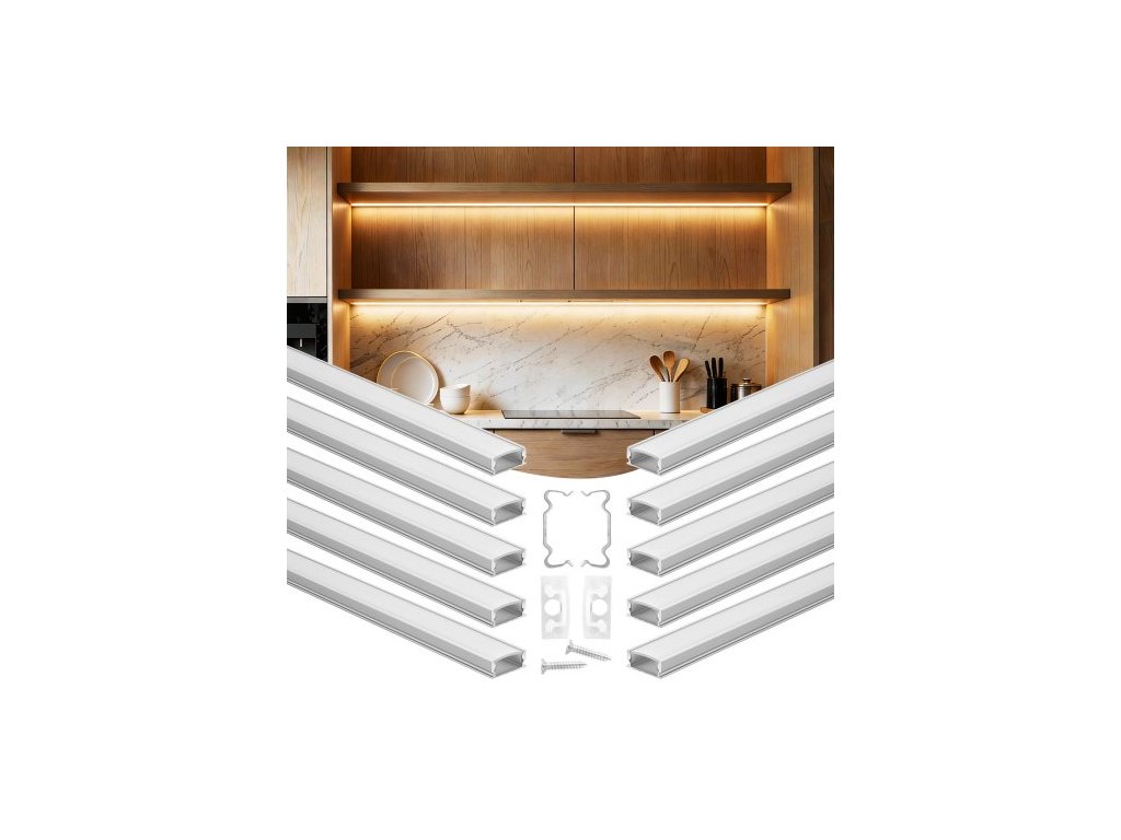 VEVOR 10 kusů hliníkových LED kanálů ve tvaru U o délce 6,6 ft/2m, s mléčným krytem, koncovkami a montážními klipy, hliníkový profil pro instalaci LED pásků, snadná instalace, pod skříňovou deskuČisté světlo