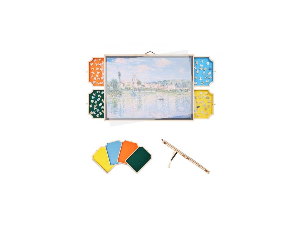 VEVOR 1000dílná otočná puzzle deska se 4 barevnými plstěnými zásuvkami a krytem, přenosný dřevěný stůl 73x53cm, nastavitelné 2-úhlové naklápění, příslušenství pro dospělé, dárek k narozeninám pro maminkuZásuvky