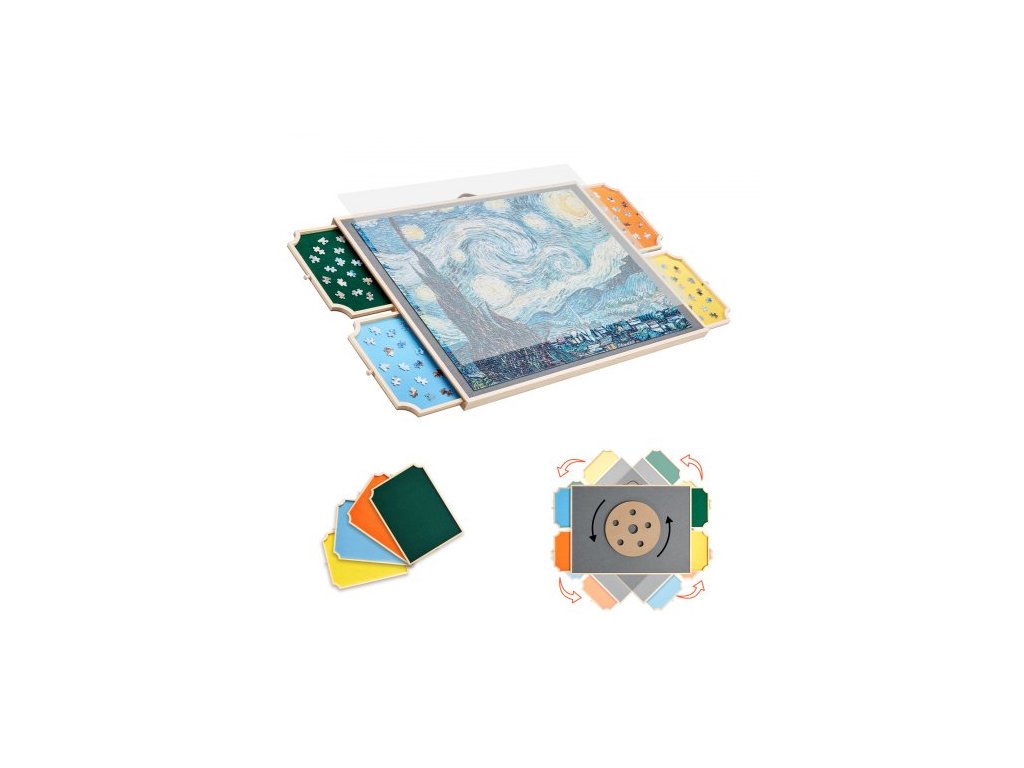 VEVOR 1500dílná otočná puzzle deska se 4 barevnými plstěnými zásuvkami a krytem, přenosný dřevěný stůl 86x63cm, nastavitelné 2-úhlové naklápění, příslušenství pro dospělé, dárek k narozeninám pro maminkuZásuvky