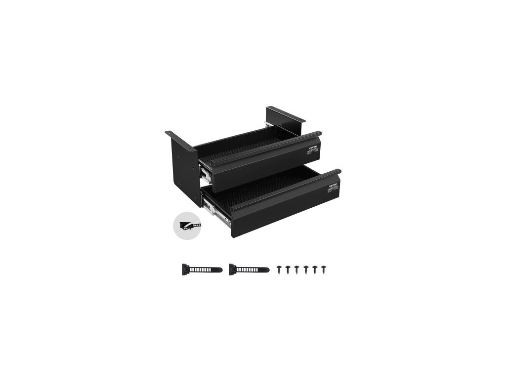 VEVOR 16" široký vysouvací úložný prostor pod stůl, výsuvný úložný prostor pod stůl, skrytý stolní úložný organizér se 2 vrstvami, zásuvka na tužky pod stolem pro domácí pracovní stanici sezení a stání, 18x9x8 palcůBezpečné a proti poškrábání odolné hrany