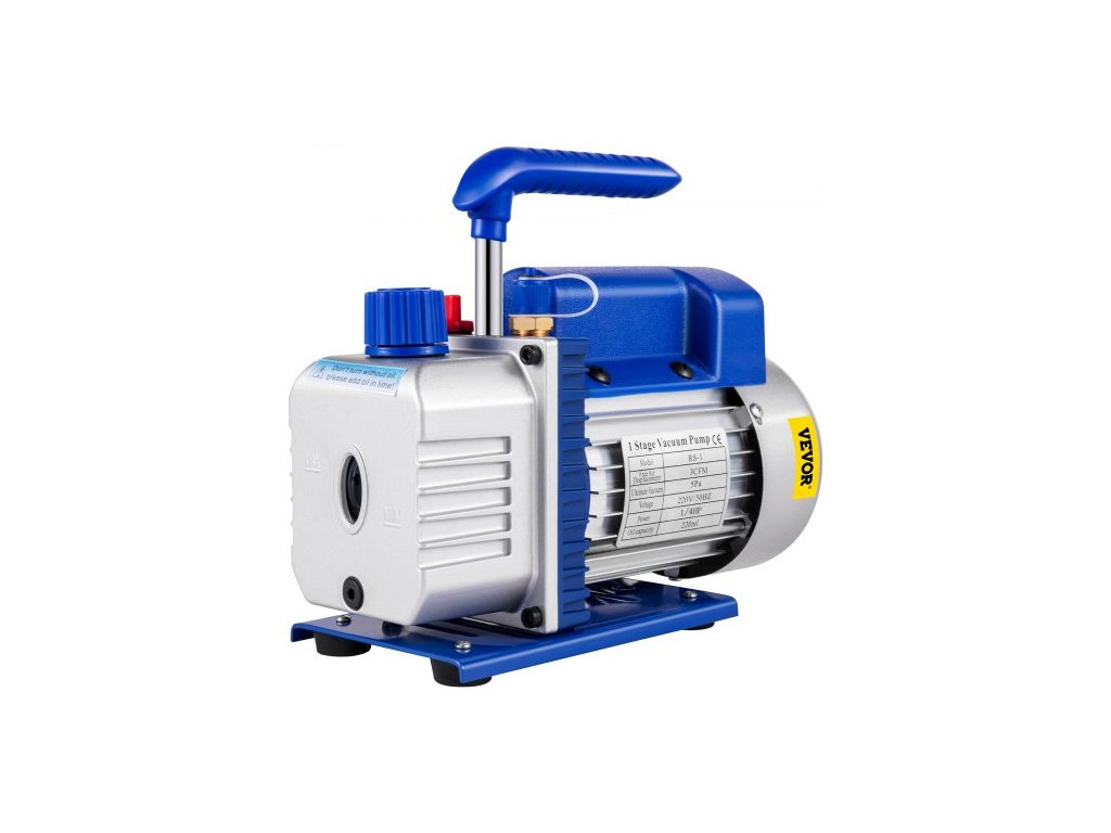 VEVOR 183 l/min (3 CFM) 246 W (1/3 HP) Vakuová pumpa Vakuová pumpa 117 l/min (1,8 CFM) 1stupňová chladicí vakuová pumpa Vakuová komora 1440 ot./min pro vakuové čerpání s R12, R22 nebo R134a jako chladicím médiem