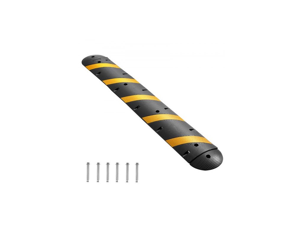 VEVOR 1830MM gumový zpomalovací prah, 2 kanály, těžký dopravní zpomalovací prah, nosnost 9 979 kg/nápravu, nájezd s ochranou kabelů s rozpínacími šrouby, pro asfaltový beton, štěrkový příjezd, 1 baleníProtiskluzový povrch