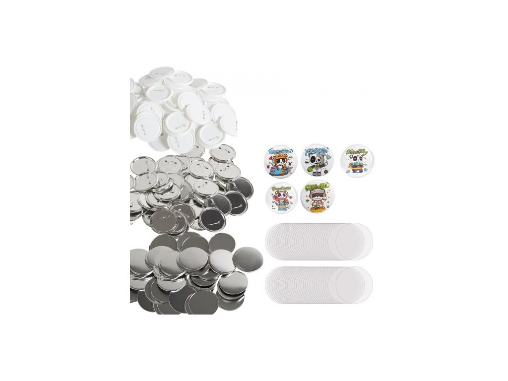 VEVOR 200 sad 3palcových 75mm dílů na zadní knoflíky, díly pro kutily na kulaté knoflíky, sada obsahuje kovový vršek, plastový/kovový knoflík, průhlednou fólii a prázdný papír na dárky, stroj NENÍ součástí balení200 kompletních sad