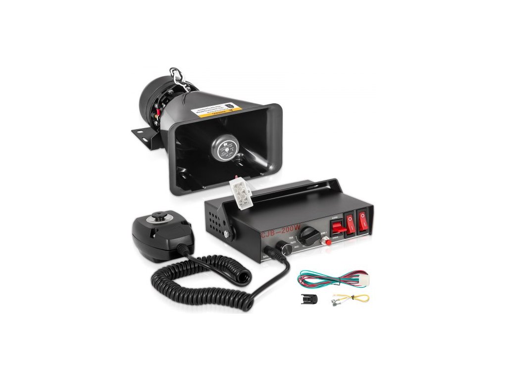 VEVOR 200W výstražný alarm do auta, 7 zvuků, hlasitý výstražný alarm, sada s mikrofonem, nouzová požární siréna, PA reproduktorHlasitě a jasně