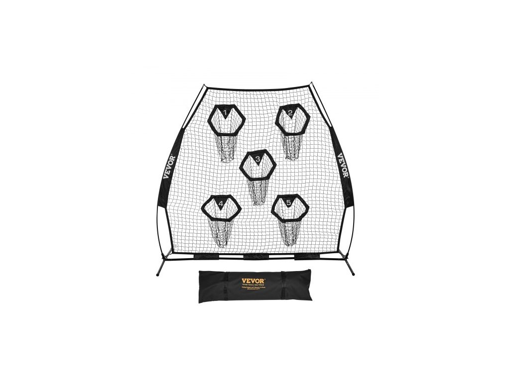 VEVOR 2133,6 x 2133,6 mm trenérská házecí síť na fotbal, tréninková házecí síť na terč s 5 kapsami na terč, síť bez uzlů, včetně popruhů a přenosného pouzdra, zlepšuje přesnost hodu quarterbackaZvýšení přesnosti