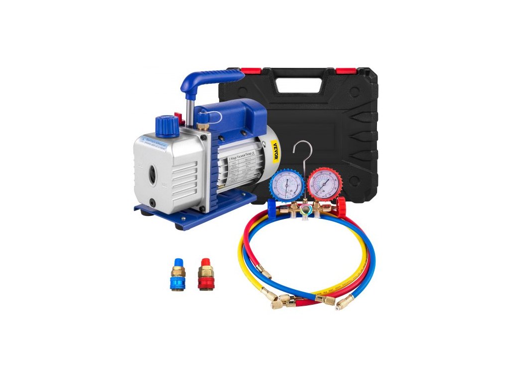 VEVOR 233 l/min (4 CFM) 246 W (1/3 HP) Vakuové čerpadlo klimatizace, vakuové čerpadlo klimatizace, vakuové čerpadlo, vakuová komora, sušicí čerpadlo, HVAC, chlazení, R22, R12, R134A, R502, adaptér klimatizaceVysoce kvalitní vakuové čerpadlo