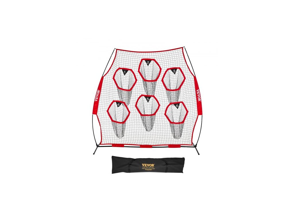 VEVOR 2438,4x2438,4 mm trenérská házecí síť na fotbal, tréninková házecí síť na terč se 6 kapsami na terč, síť bez uzlů včetně popruhů a přenosného pouzdra, zlepšuje přesnost hodu quarterbackem, červenáZvýšení přesnosti