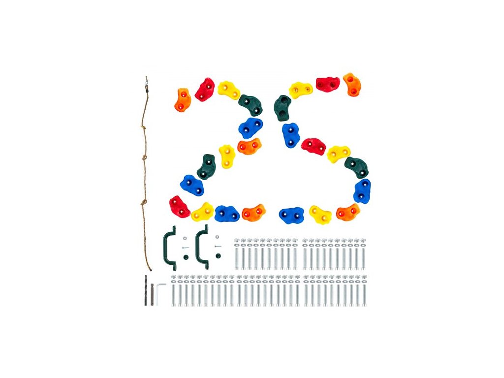VEVOR 25 lezeckých chytů, lezecké skály různých velikostí a barev pro děti i dospělé, chyty na skalní stěnu s uzlovým lanem, rukojeti a montážní materiál, úchyty na lezecké stěny pro vnitřní i venkovní použitíOdolný a robustní
