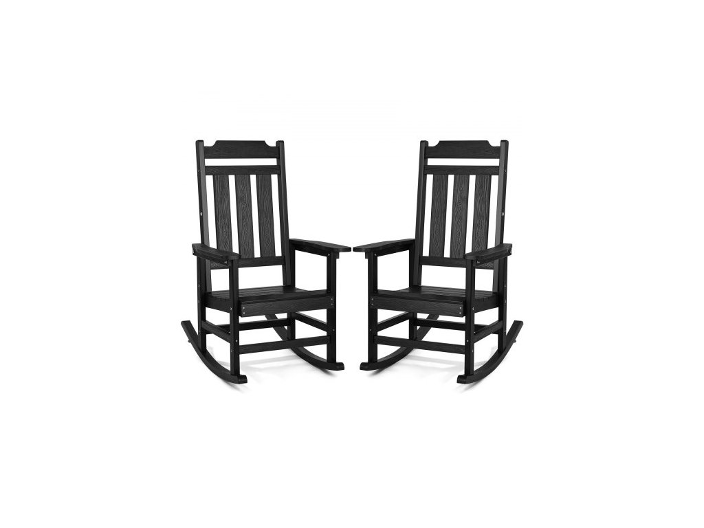 VEVOR 2dílné houpací křeslo na verandu, venkovní houpací křeslo HIPS, vysoké opěradlo na terasu s hladkými područkami, nosnost až 180 kg, pro zahradu, balkon, verandu, černé