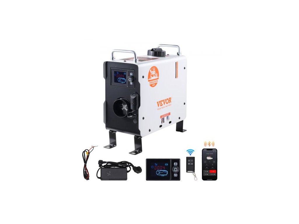 VEVOR 2KW dieselové ohřívač vzduchu, 12V/24V univerzální dieselový ohřívač vzduchu, s ovládáním přes Bluetooth APP, dálkovým ovládáním a displejem, alarmem CO, přenosným dieselovým ohřívačem s rychlým ohřevem pro vozidla a venkovní použití.Široká kompatibilita
