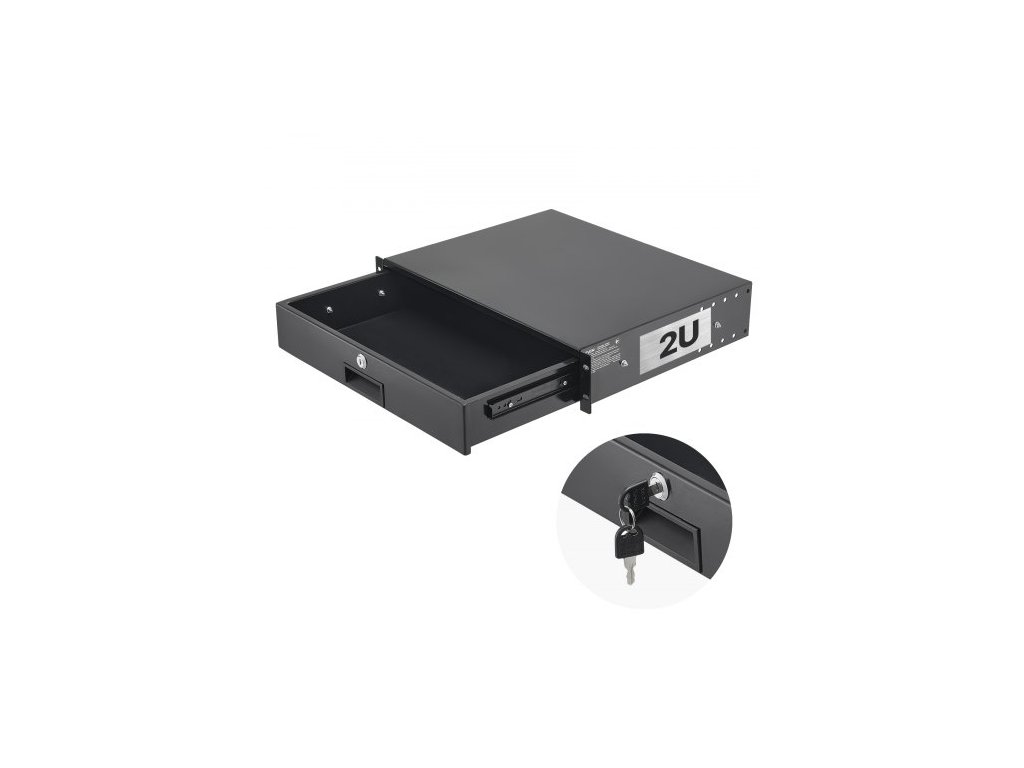 VEVOR 2U zásuvková skříň do racku, maximální nosnost 22,68 kg, uzamykatelná serverová skříň, posuvná zásuvka se zámkem a otvory pro vedení kabelů, pro síťové zařízení, server, AV rack nebo skříňPlná uhlíková ocel
