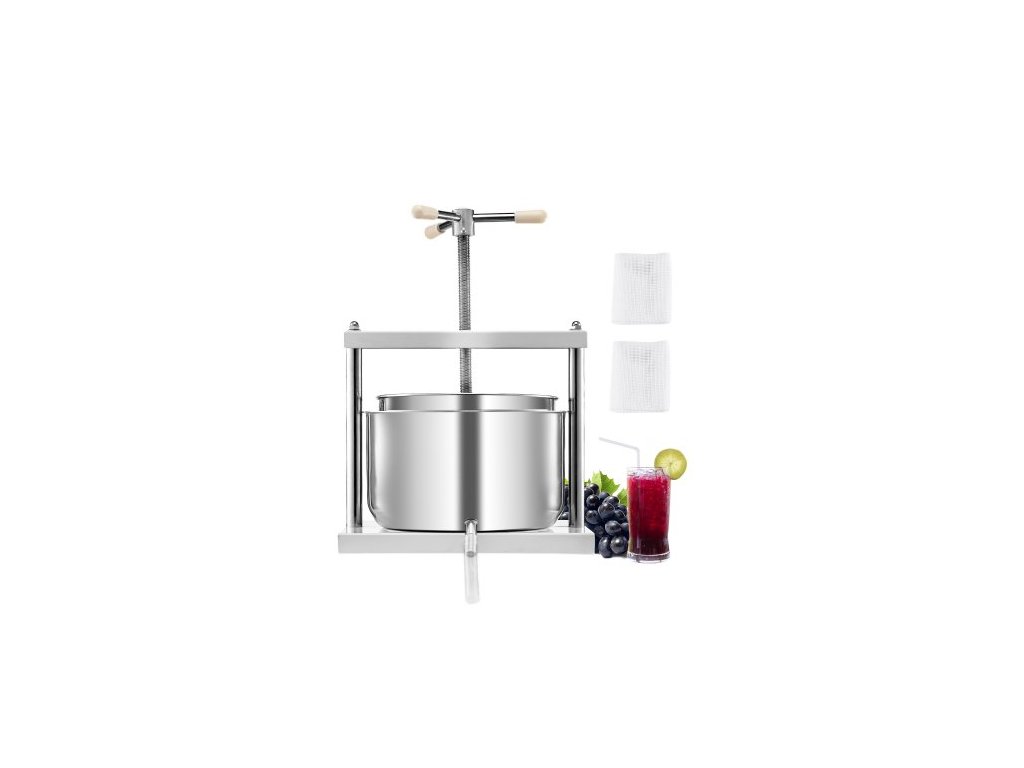 VEVOR 3,17 Gal/12L lis na ovocné víno, 2 nerezové sudy, ruční odšťavňovač, lis na výrobu jablečného, hroznového a medového vinného cideru, olivového oleje a tinktury s trojúhelníkovou rukojetí pro venkovní kuchyň a domácí použitíVelká přítlačná deska