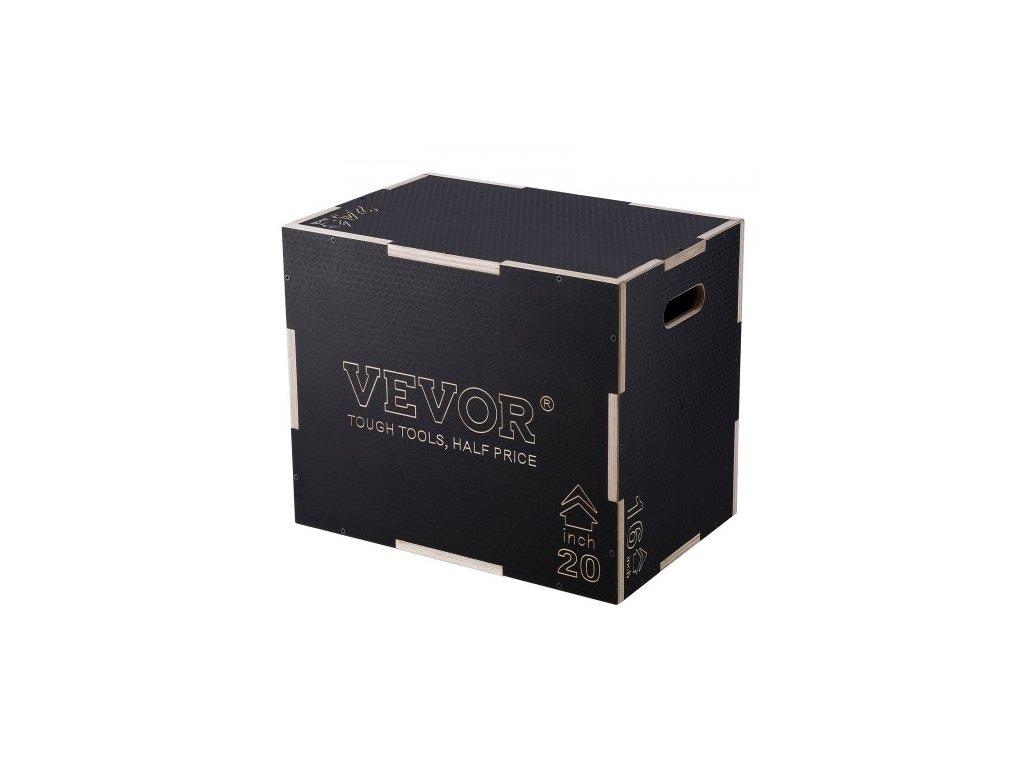 VEVOR 3 v 1 plyometrický skákací box, 24/20/16 palcový dřevěný plyometrický box, platforma a skákací box na agilitu, protiskluzový fitness cvičební box pro trénink v domácí posilovně, kondiční silový trénink, černýVíce velikostí