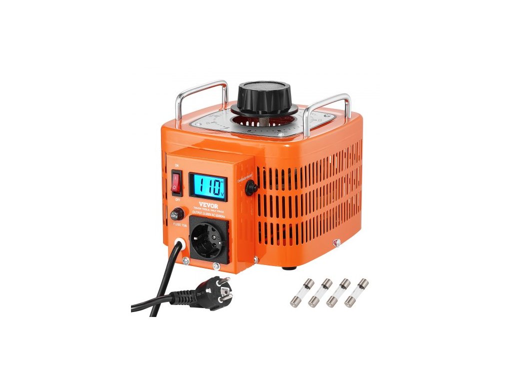 VEVOR 3000VA Automatický transformátor napětí, 10 A, vstup 230 V, výstup 0-300 V, regulátor střídavého napětí, s LCD displejem, 4 extra pojistky, tepelný spínač pro domácí, průmyslovou a kancelářskou práci, certifikace CETransformátor s proměnným napětím 3000VA