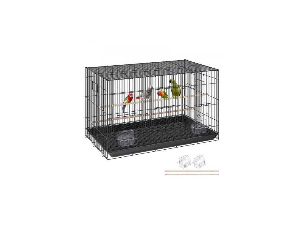 VEVOR 30palcová ptačí klec, kovová klece pro velké andulky, korely, malé papoušky, hrdličky, kanáry, ptačí klec s kolečkovým stojanem a tácemVysokopevnostní uhlíková ocel