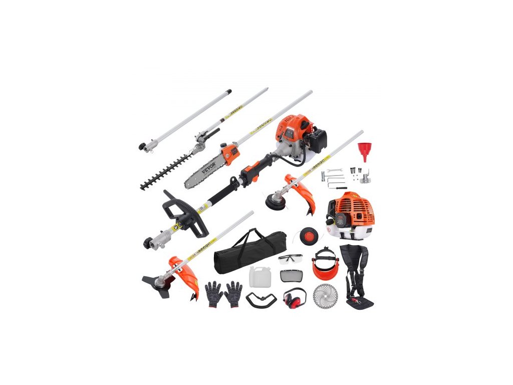 VEVOR 33CC 6 v 1 multifunkční vyžínací nástroje, benzínový nůž na živý plot, vyžínač plevele, strunový vyžínač, křovinořez, ořezávač okrajů, vyžínač s tyčí, řetězová pila s prodlužovací tyčí