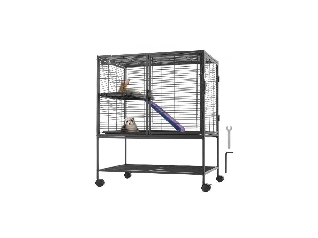 VEVOR 36" rolovací kovová klec pro fretky, velká 2patrová klec Critter Nation, klec pro malá zvířata s rampami a tácem, snadno sestavitelná pro domácí mazlíčky, krysy, křečky, morčata, činčily, veverky, ježky, králíkyProstorný prostor