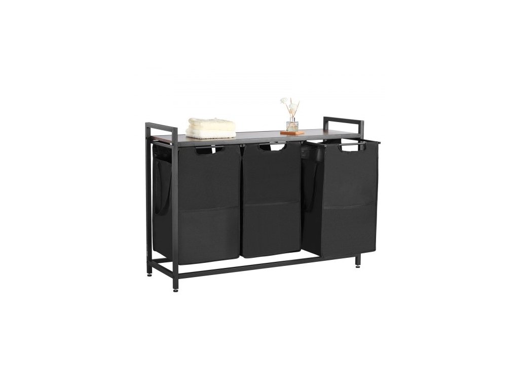 VEVOR 3dílný třídič prádla, velký koš na prádlo s kovovým rámem a dřevěnou deskou, volně stojící úložné koše s výsuvnými sáčky z oxfordské látky 600D na špinavé prádlo, koupelnaEfektivní skladování
