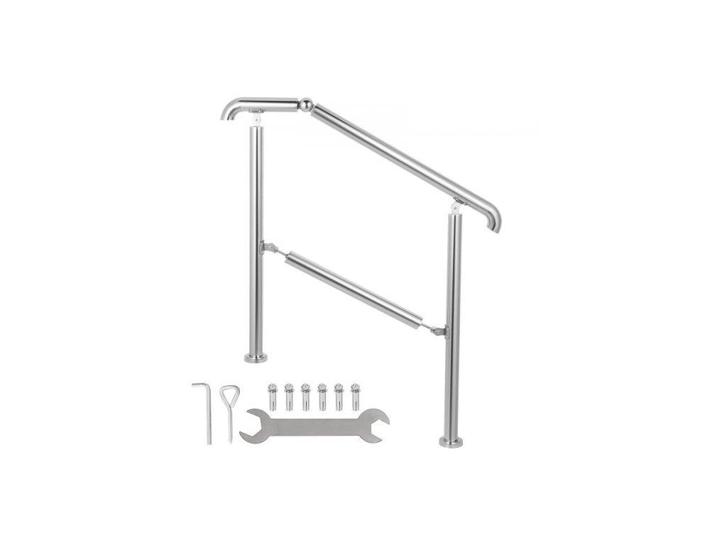 VEVOR 3stupňové zábradlí Nerezové přechodové zábradlí vhodné pro rovný povrch a 1 až 3stupňové nastavitelné schodišťové zábradlí Vnitřní venkovní schodišťové zábradlí Kapacita 220 lb s instalační sadou Veranda DIYPřizpůsobte 2 až 3 kroky