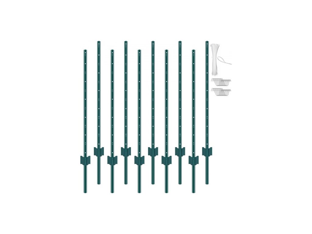 VEVOR 4 stopy plotové sloupky, balení 10 kusů U-drážkových těžkých kovových plotových sloupků, robustní ocelové plotové kolíky pro zahradu, trávník, farmy a venkovní drátěné oplocení, zelené