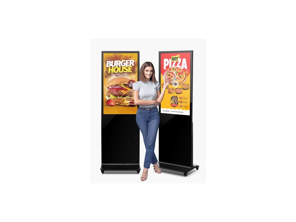 VEVOR 43palcový digitální signage displej, dotykový digitální kiosk, vnitřní podlahový kiosk, 2K UHD LCD obrazovka, 2 GB RAM a 32 GB ROM, s WiFi HDMI/USB vstupem, komerční reklamní displej