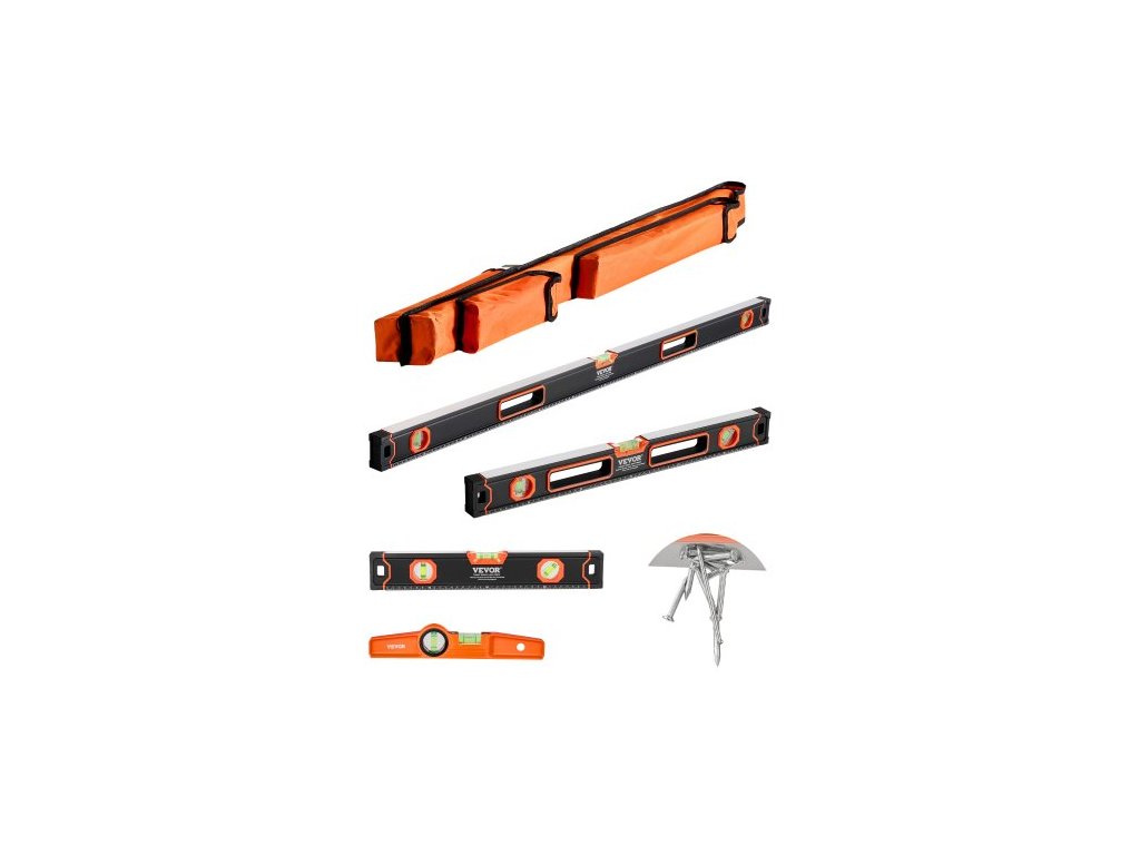 VEVOR 4dílná torpédová vodováha, sada magnetických vodováh 48/24/16/10 palců, fluorescenční osvětlovací bublinkové pravítko pro 45/90/180 stupňů, magnetický nivelační nástroj z hliníkové slitiny, SAE a metrická stupnice