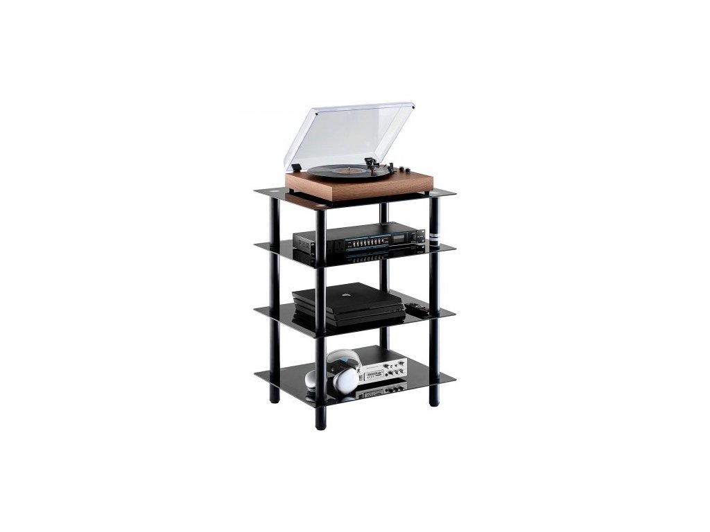 VEVOR 4patrový AV mediální stojan, audio/video stojan se zesílenými policemi z tvrzeného skla pro DVD/kabelové boxy/herní konzole, úložná skříňka na média pro herní/nahrávací místnost