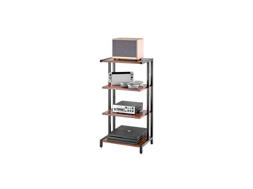 Rozměry produktu: 420 x 280 x 818 mm / 16,54 x 11,02 x 32,20 palce, Hlavní materiály: PB deska, železo, Hmotnost produktu: 6,6 kg / 14,55 liber, Barva: Vintage hnědá + černá, Nosnost: 45 kg, Typ produktu: Stojací, Počet úrovní: 4,Model produktu: CSF-MS24305