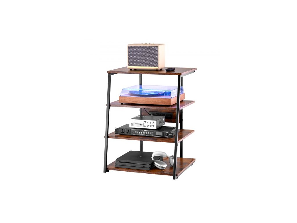 VEVOR 4patrový AV mediální stojan s prodlužovacími kabely, rohový TV stolek s LED světly, výškově nastavitelné dřevěné police pro DVD přehrávače/kabelové boxy/herní konzole, hnědýRobustní a nosná