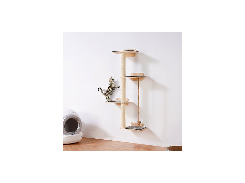 VEVOR 4patrový vysoký kočičí strom, nástěnná sada kočičího nábytku se 4 skákacími prkny, nástěnná plovoucí police pro kočky do 18 kg, 12mm borovicové kočičí bidýlko pro spaní, hraní a lezeníNaše nástěnná police pro kočky obsahuje 4 skákací prkna, 3 sloupky pro kočky a 1 lano pro kočky, které splňují různé potřeby pro lezení, zábavu, odpočinek a škrábání a obohacují tak herní čas vaší kočky.