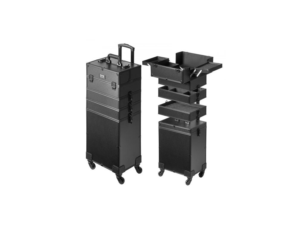 VEVOR 5 v 1 profesionální kufřík na make-up, hliníkový kosmetický kufřík, pojízdný kufřík na make-up, extra velký cestovní organizér na make-up, s otočnými kolečky o 360° a nastavitelnou tažnou tyčí, černýVelkokapacitní úložiště