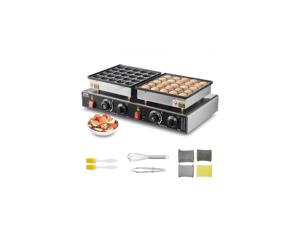 VEVOR 50PCS Mini holandský palačinkárna, nepřilnavý pekáč z nerezové oceli, 1800W komerční elektrický gril Poffertjes, dvojitá regulace teploty a času, pro kuchyňskou restauraci, snídani a dezert