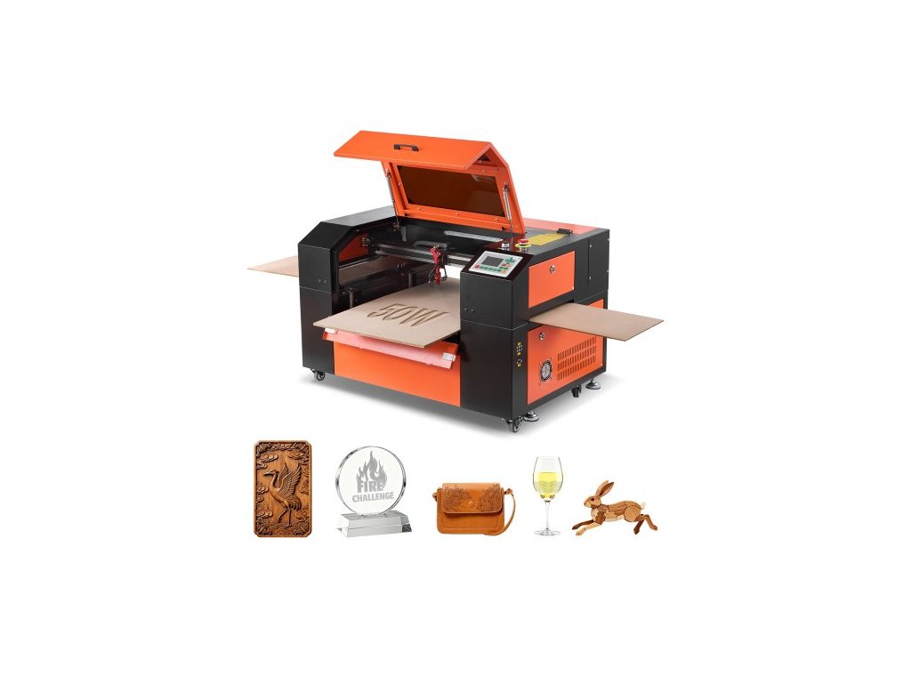 VEVOR 50W CO2 laserový gravírovací stroj, 500 x 300 mm, CO2 laserový gravírovací a řezací stroj se 4cestným vzduchovým přídavkem, gravírovací a řezací stroj, kompatibilní s LightBurn CorelDRAW RDWorks, pro dřevo a akrylátové sklo