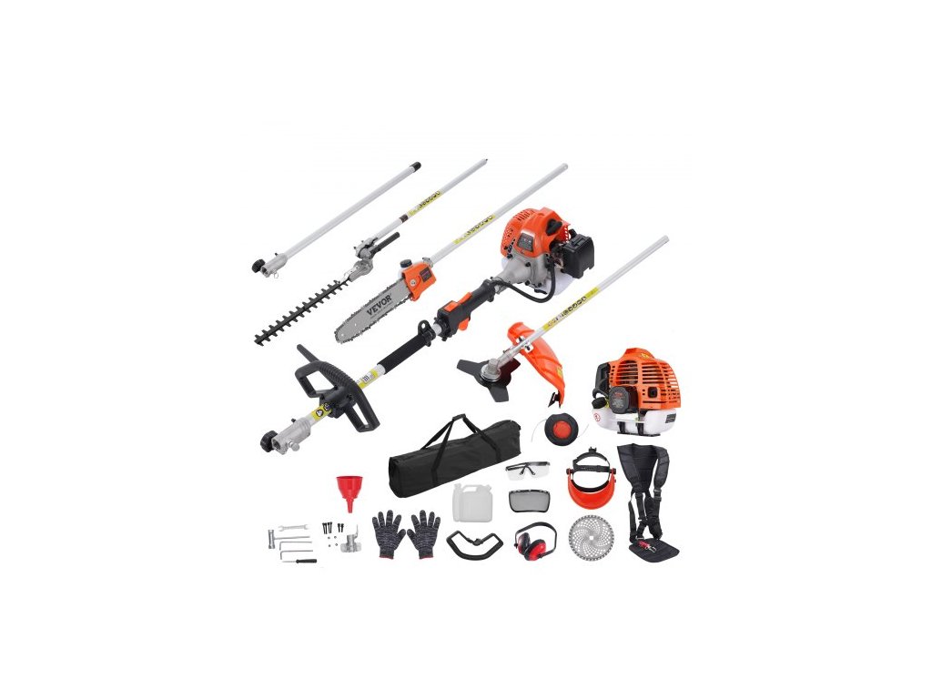 VEVOR 52CC 6 v 1 multifunkční vyžínací nástroje, benzínový nůž na živý plot, odstraňovač plevele, strunový vyžínač, křovinořez, ořezávač okrajů, vyžínač s tyčí, řetězová pila s prodlužovací tyčí