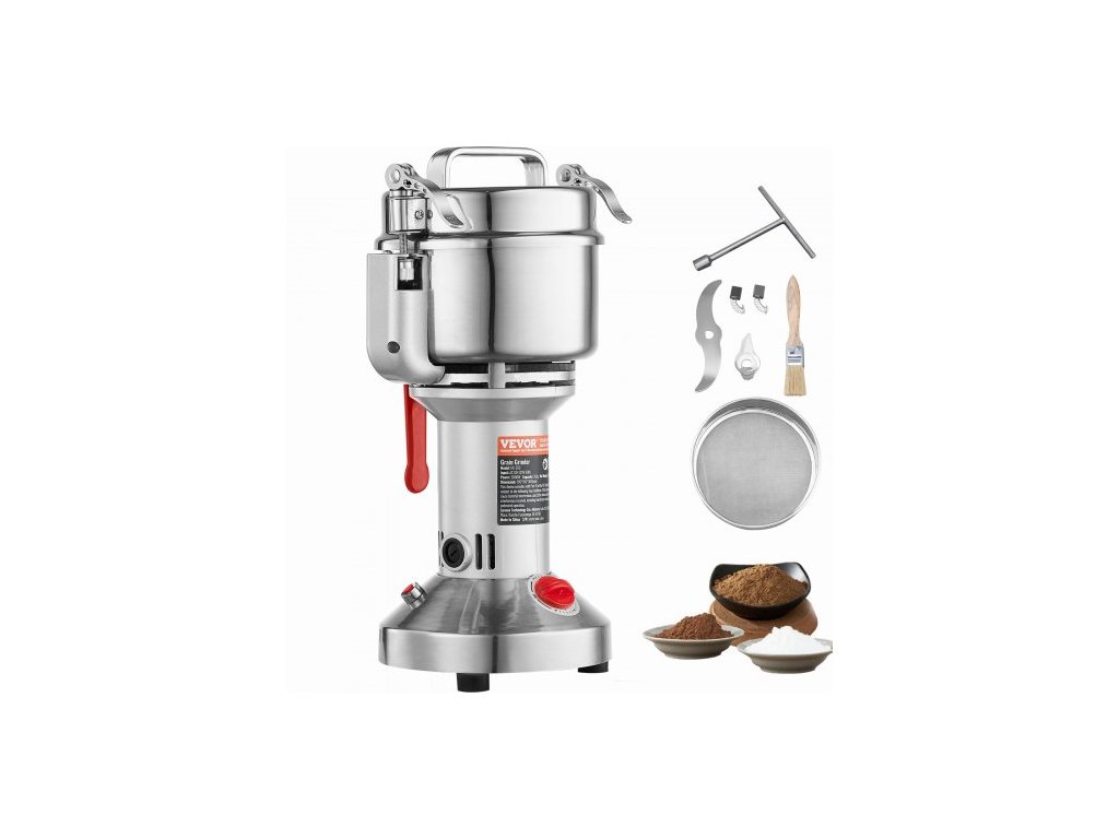 VEVOR 550g elektrický mlýnek na obilí, vysokorychlostní 2000W komerční mlýnky na koření, nerezový drtič na prášek, na suchá zrna, koření, obiloviny, kávu, kukuřici, pepř, rovný typ