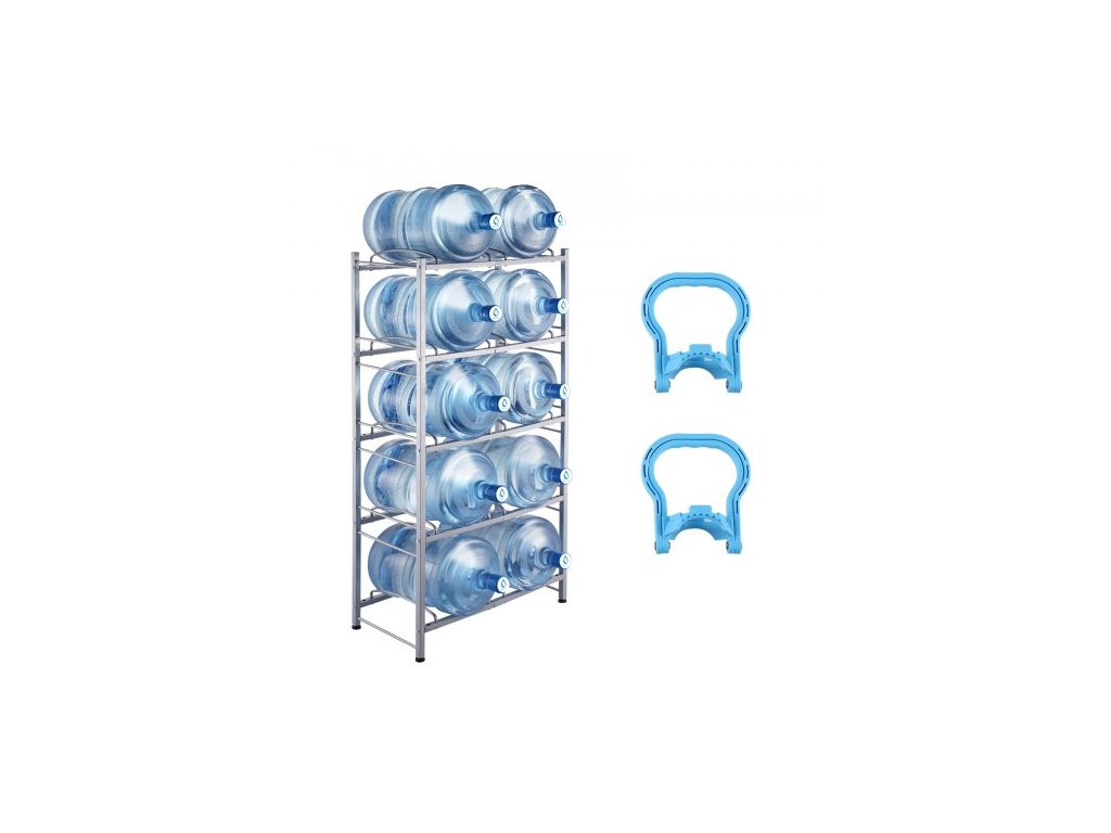 VEVOR 5patrový držák na džbány na vodu, držák na 5galonové lahve s vodou, dvouřadý stojan na 10 lahví s vodou, odolný stojan na džbány s vodou do kuchyně, kanceláře, obývacího pokoje, stříbrnošedý