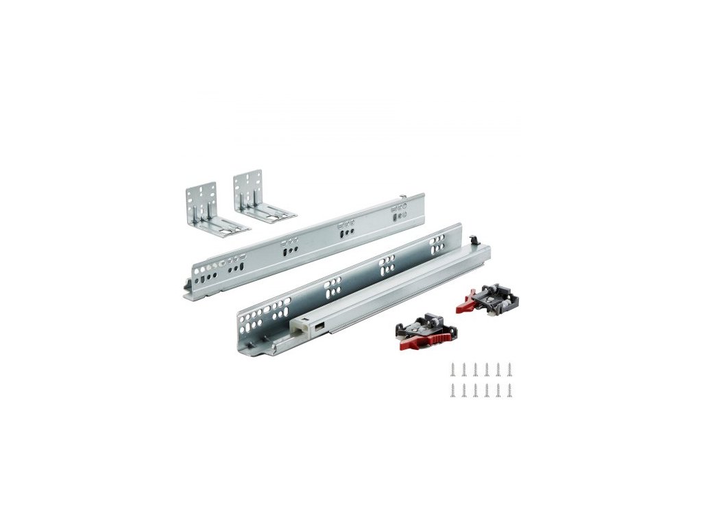 VEVOR 6 párů bočních lišt pro spodní část zásuvky 381 mm, odolná ocelová kolejnice s kuličkovými ložisky, tiché vodicí kluzáky s měkkým zavíráním a zamykacím mechanismem, 100 liber