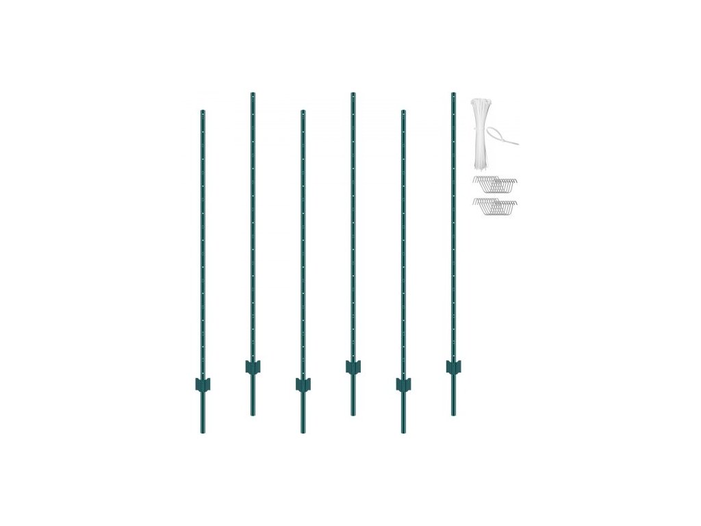 VEVOR 6 stop plotové sloupky, balení 6 kusů U-drážkových těžkých kovových plotových sloupků, robustní ocelové plotové kolíky pro zahradu, trávník, farmy a venkovní drátěné oplocení, zelené