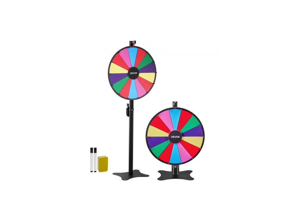 VEVOR 610 mm rotující kolo, 14 slotů, rotující kolo se stojanem, nastavitelná výška, ruleta s výhrou štěstí, mazání za sucha a 2 fixy, 6 barev, snadná montáž, pro párty, hospody, veletrhy, karneval