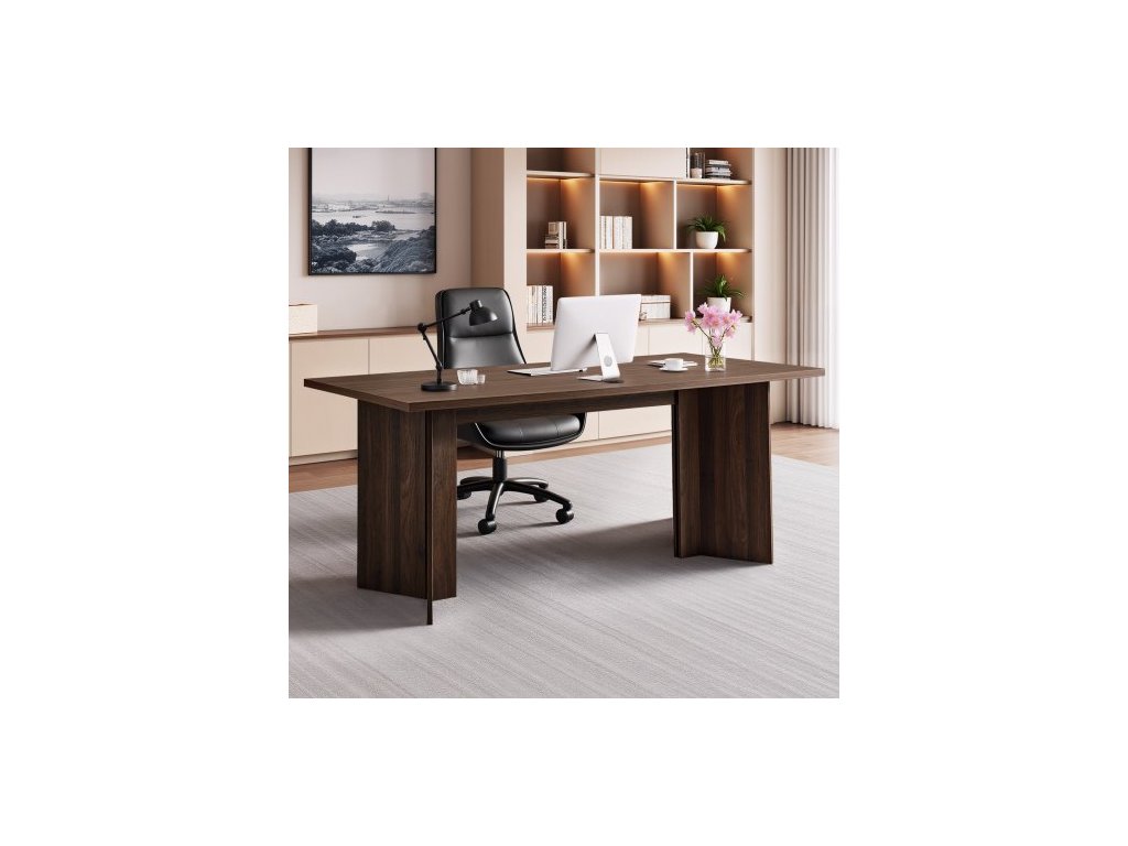VEVOR 63 palcový manažerský stůl, velký moderní obdélníkový kancelářský stůl, odolný dřevěný manažerský stůl s otvorem pro připojení kabelu, nosnost 113 kg, snadná montáž, pro práci, studium, psaní, ořech