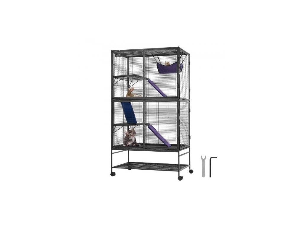 VEVOR 64,6" kovová klec pro malá zvířata 4patrová rolovací klec pro fretky s 3 rampamiProstorný prostor
