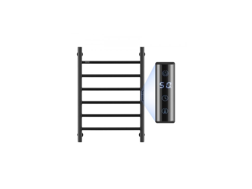 VEVOR 6barový vyhřívaný věšák na ručníky, nástěnný vyhřívaný věšák na ručníky do koupelny, vodotěsný věšák na ručníky IPX5 s časovačem a LED displejem, 5 úrovní nastavitelné teploty, černý