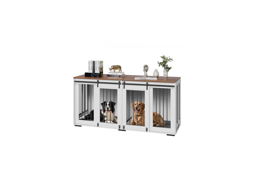 VEVOR 72" psí klece pro 2 psy, dvojitá psí klece s dvojitými posuvnými dveřmi, velký TV stolek s odnímatelným podnosem, ocelový rám dvojité psí klece pro malé, střední a velké psy, bíláVšestranná přepravka pro psy