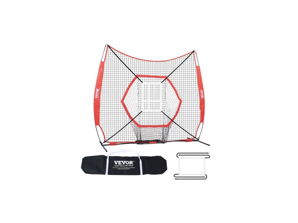 VEVOR 7x7 stop baseballová tréninková síť na softball, přenosná baseballová tréninková síť pro odpalování, chytání a nadhazování, pomůcka pro trénink vybavení na baseball s rámem pro luk, přepravní taškou a úderovou zónouCílový rám